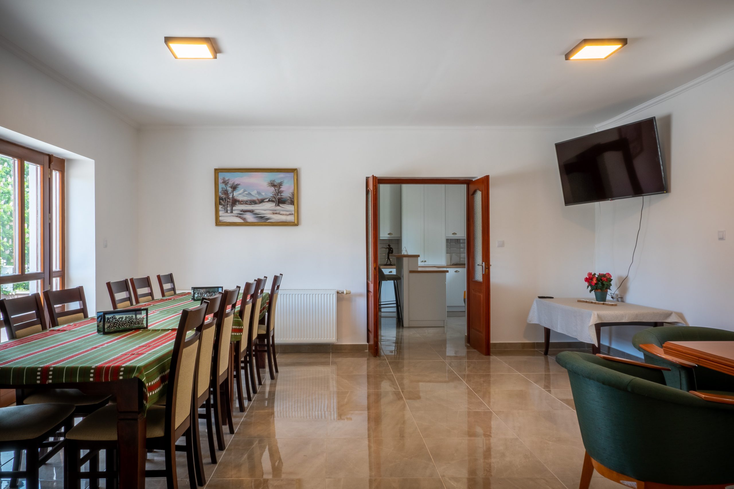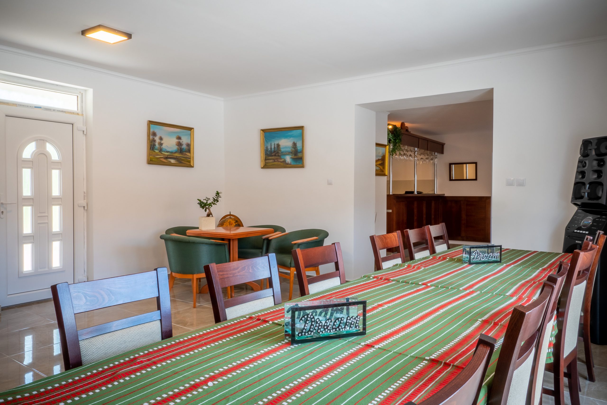 - Szálláshelyünkön lehetőség van reggeli, félpanzió és teljes ellátás igénylésére is. Amennyiben ebédet és vacsorát is szeretnének kérni, azt étlapról tudjuk Önöknek biztosítani előzetes egyeztetés alapján. Továbbá lehetőség van a közös konyha használatára is. Amennyiben a közös konyhát szeretnék használni, a főzéshez szükséges alapanyagok beszerzését akkor tudjuk biztosítani, ha azt előre jelzik felénk!